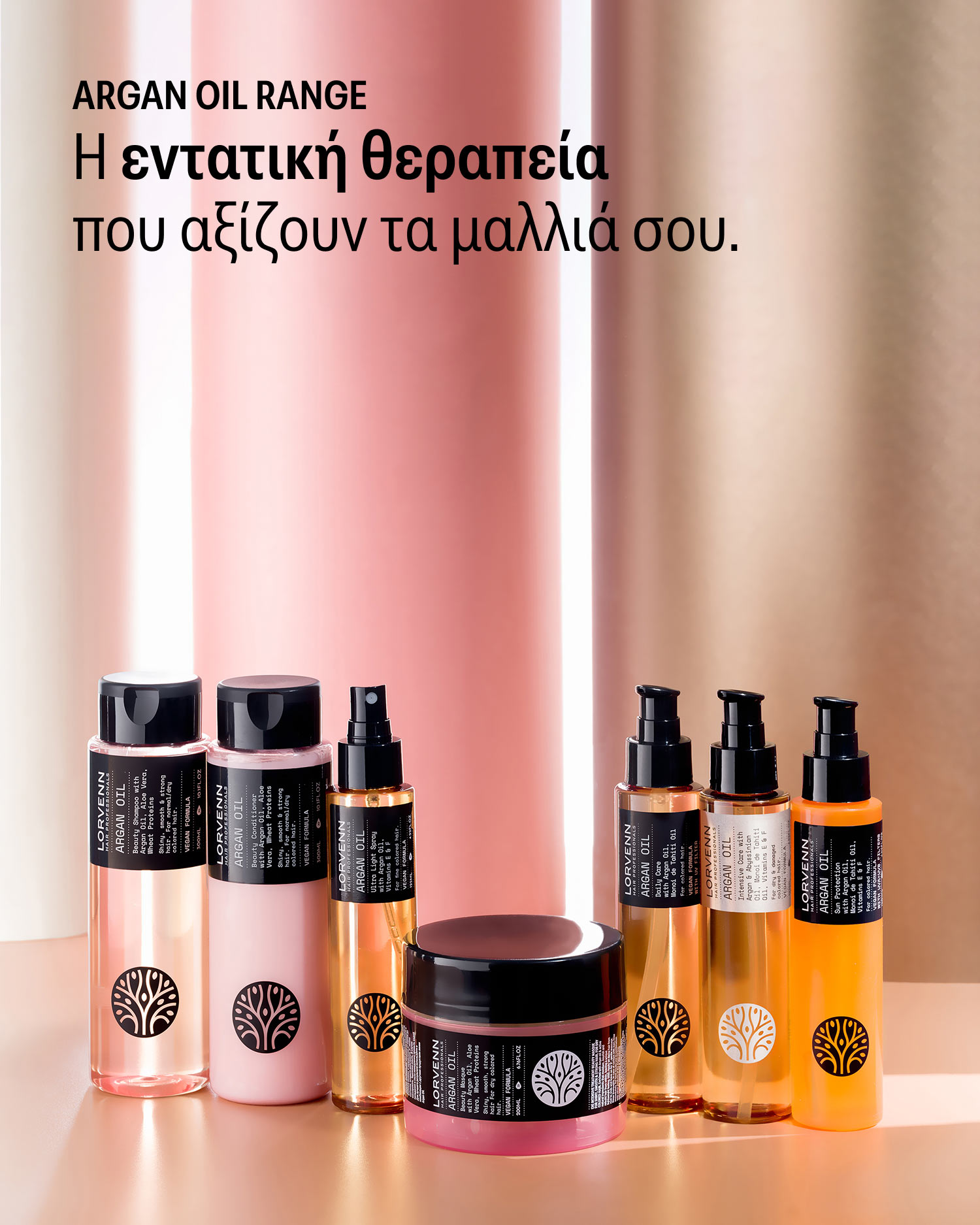 Η σειρά Argan Oil της Lorvenn συνδυάζει πολύτιμα εξωτικά έλαια — Argan, Monoi de Tahiti και Abyssinian — με πρωτεΐνες σιταριού για βαθιά θρέψη, ενυδάτωση και εκτυφλωτική λάμψη. Vegan σύνθεση, επαγγελματικό αποτέλεσμα.