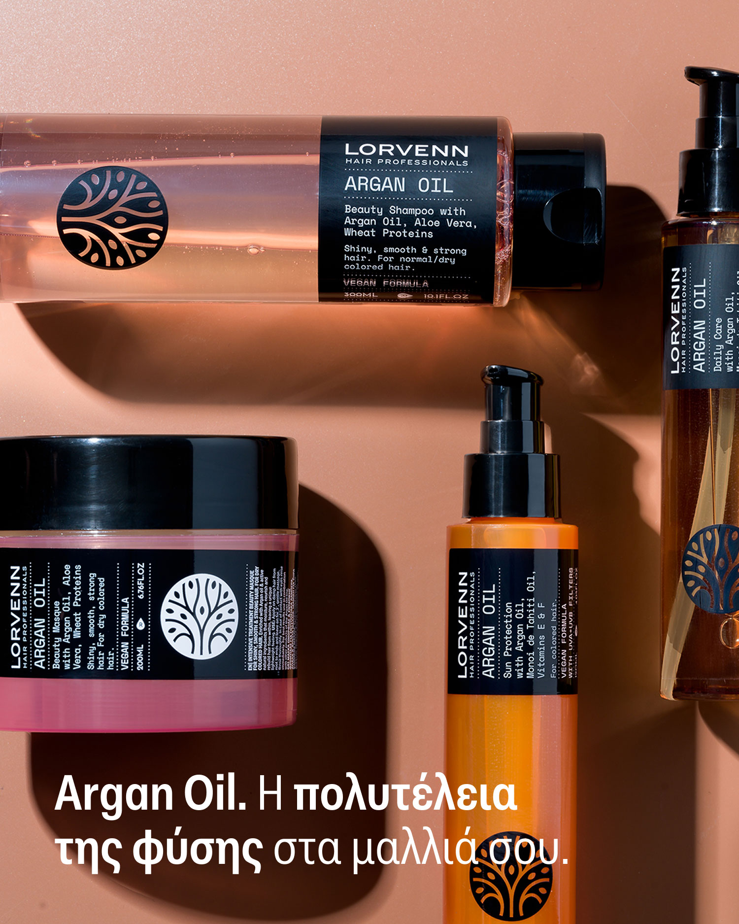 Η σειρά Argan Oil της Lorvenn συνδυάζει πολύτιμα εξωτικά έλαια — Argan, Monoi de Tahiti και Abyssinian — με πρωτεΐνες σιταριού για βαθιά θρέψη, ενυδάτωση και εκτυφλωτική λάμψη. Vegan σύνθεση, επαγγελματικό αποτέλεσμα.
