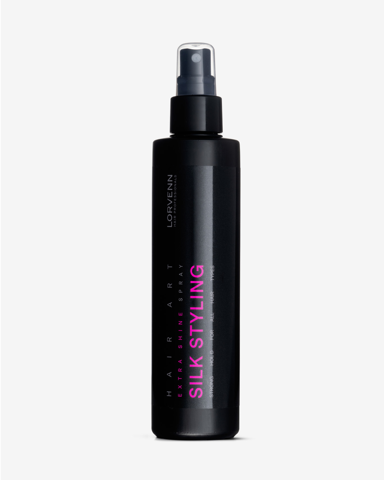 New composition enriched with natural silk proteins for extra shine and strength to hair. Due to the new rubbery polymers of advanced technology, it ensures flexible long lasting hold, controls the volume and forms without frizzing. It resists humidity and dries quickly, without drying and sticking the hair. Without propellant gas.